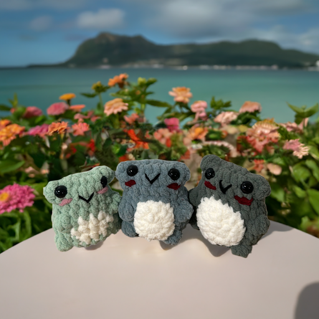 A cute crochet frog is a charming, handmade toy crafted with soft yarn and attention to detail. Its rounded body, big eyes, and friendly smile create an endearing look, making it a delightful addition to any collection or a perfect gift for someone special.